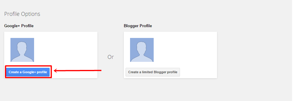 3. Setelah Sign In, sobat akan masuk kehalaman selanjutnya. silahkan pilih “Google+ Profile” agar lebih mudah terhubung dengan Google+ klik “Create a Google+ profil” seperti dibawah ini:
