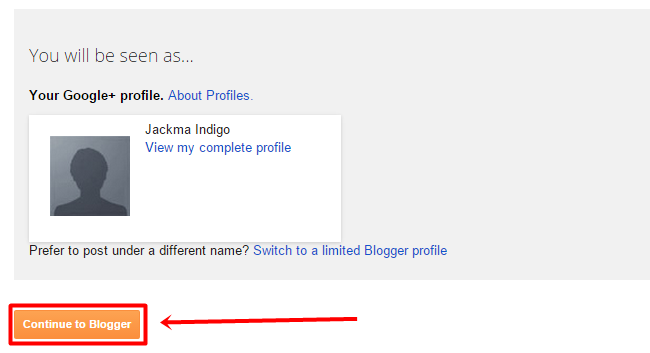 7. Berikutnya konfirmasi profil dan klik “Continew to Blogger”